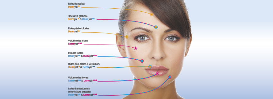 Dermyal® existe sous cinq formulations différentes qui permettent d'effacer tous types de rides et de restaurer pleinement les volumes et contours du visage.